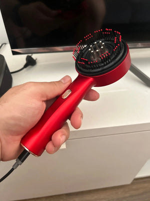 Unlike others, our brush combines microcurrent technology with red light therapy to deeply nourish your scalp and promote healthy hair growth.